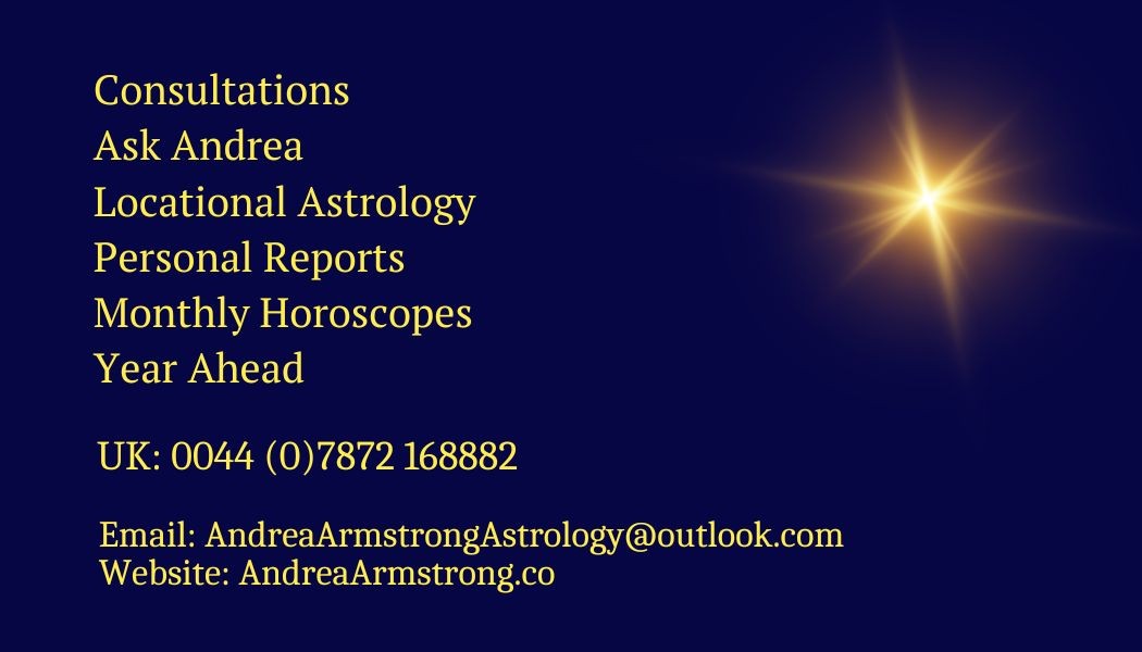 Welcome, I'm Andrea! Certified Modern Western Astrologer and Coach. Discover who you were born to be through a Natal Chart consultation. The goal is for you to come away with a deeper understanding of yourself as well as the main themes of your life and your Purpose. After the initial Natal Chart consultation, you can also book Year Ahead, Relocational or Specific Question readings. I am also a certified NLP, TimeLineTherapy@ and Hypnotherapy Coach and use this skills to facilitate the sessions.